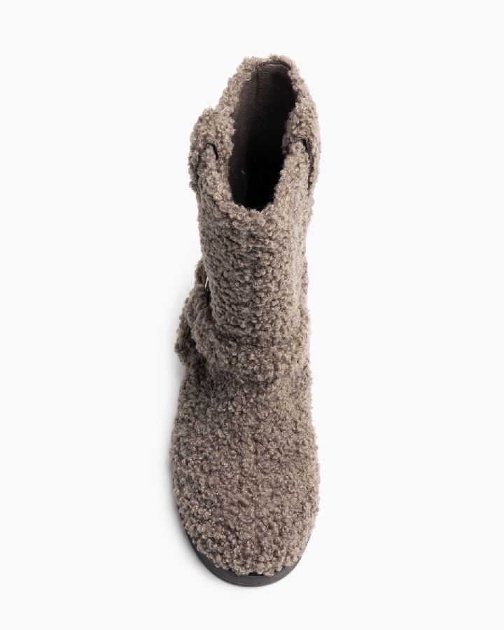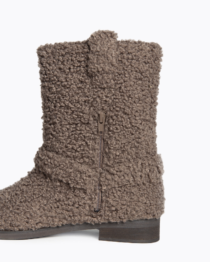 Una bota peluche con 3cm de tacón que es muy cómoda de llevar y combinar con cualquier look. Lleva una cremallera para facilitar su colocación.