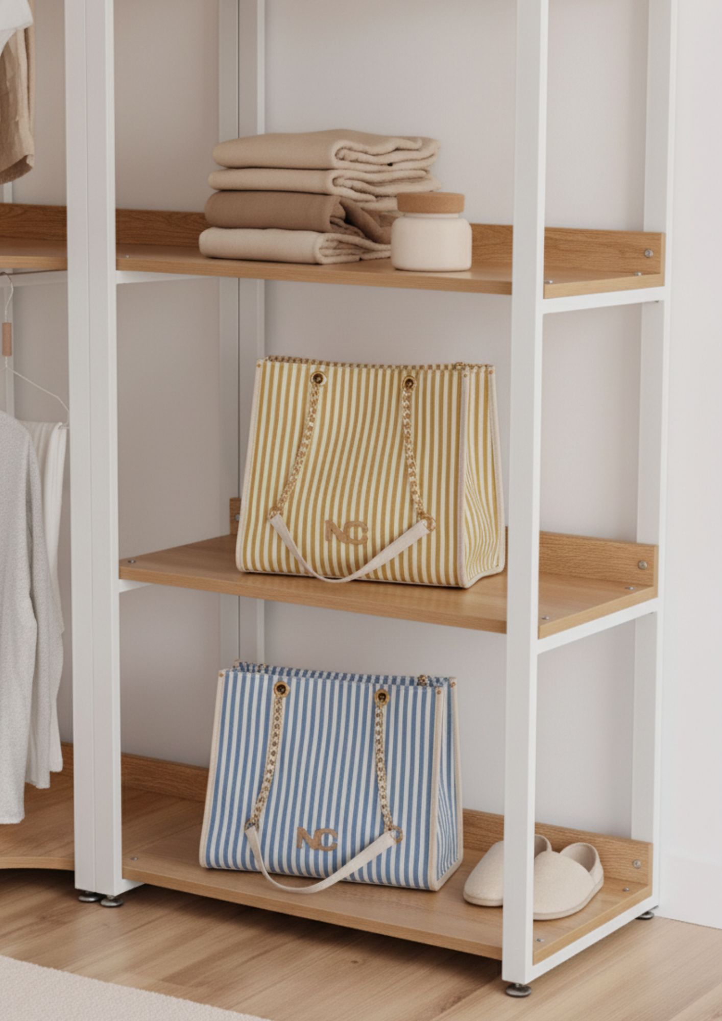 El bolso tote líneas es el aliado perfecto para la temporada de verano. Diseñado en una lona de alta calidad con textura y relieve, destaca por su combinación de fondo beige con rayas de color, aportando un estilo fresco, luminoso y muy actual.